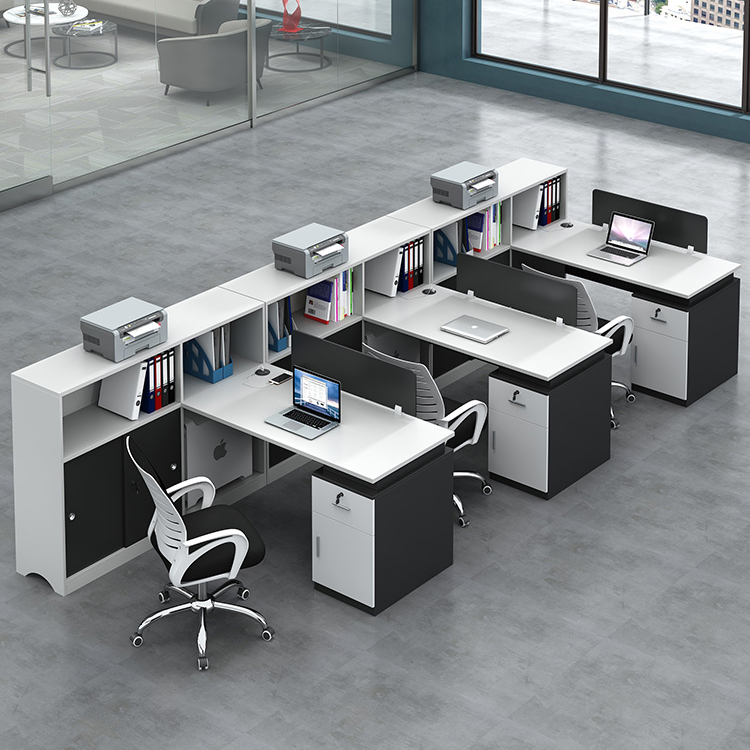 T字型四人帶柜辦公卡位